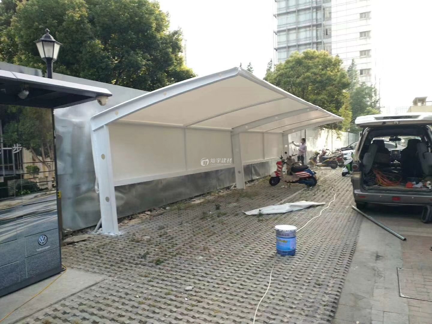 位于濱河路的蘇州昆曲學(xué)校膜結(jié)構(gòu)電動自行車充電棚日前安裝完畢,方便了全體師生停車充電的難題, 如有需要請致電400-799-8099蘇州燦宇車棚
