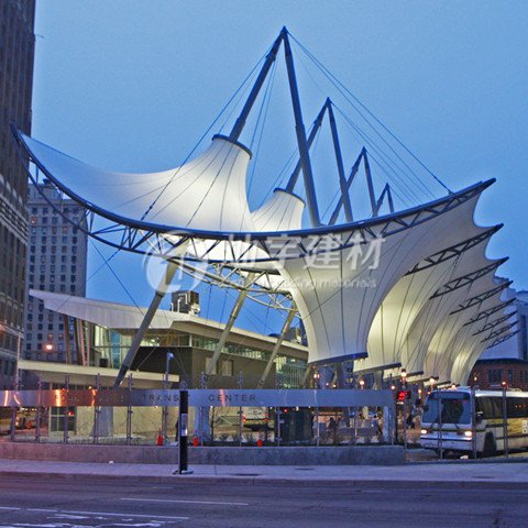 拉桿膜結構車棚意思很明確,那就是有個不銹鋼鋼柱固定在地面,