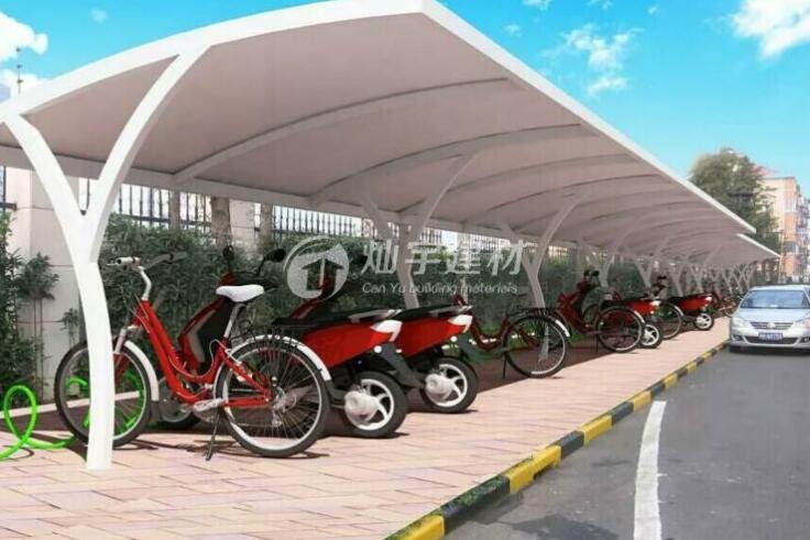 膜結構車棚膜面采用的主要有是聚四氟乙烯涂面PVC聚酯纖維類薄膜,材料主要指標應包括單位重量、厚度、力學性能、光學性能、防火性能及耐久性等。
